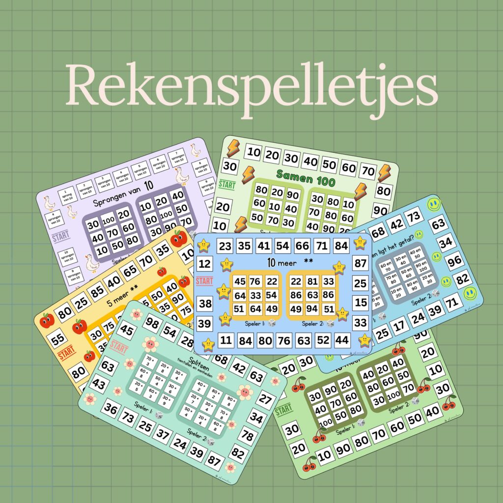 Rekenspelletjes om extra oefenen met de rekenvaardigheden waar de kinderen in groep 4 mee te maken krijgen…