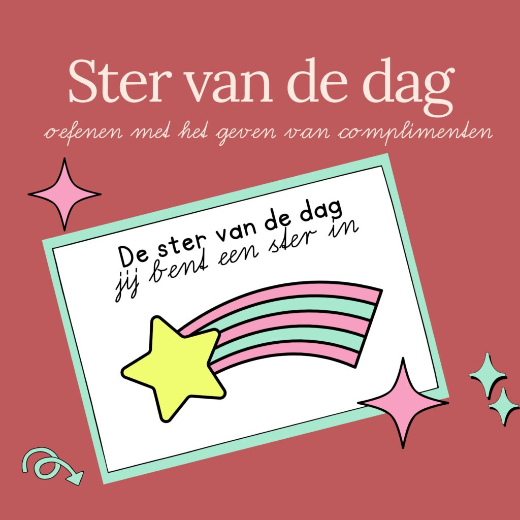 Het werken aan een positief groepsklimaat gebeurt het hele jaar door. Door verschillende spelletjes en oefeningen. Een oefening die altijd erg populair is in mijn klas en die zorgt voor een mooie positieve dagafsluiting is de ster van de dag