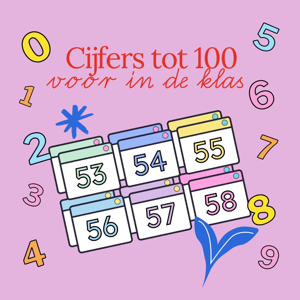 Leuke cijfers tot 100 om boven je schoolbord te hangen of om actieve werkvormen mee te doen zoals de opfrisser: zoek iemand waarmee…
