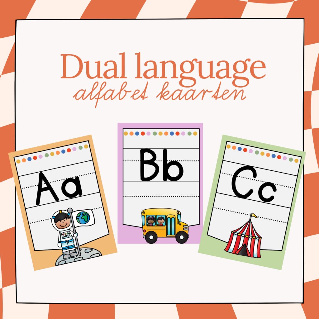 Bilingual alphabet cards using shared English-Dutch sounds to support early phonics and sound awareness, helping young learners build letter-sound connections across languages while honoring both their classroom language and their home-language.