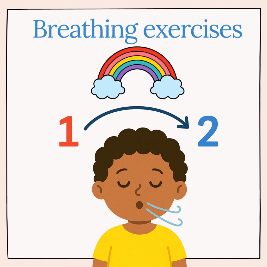 Simple breathing exercises to help children relax, reset, and refocus during the school day. From rainbow breathing to mindful counting, each activity supports emotional well-being, calm concentration, and a positive classroom atmosphere.